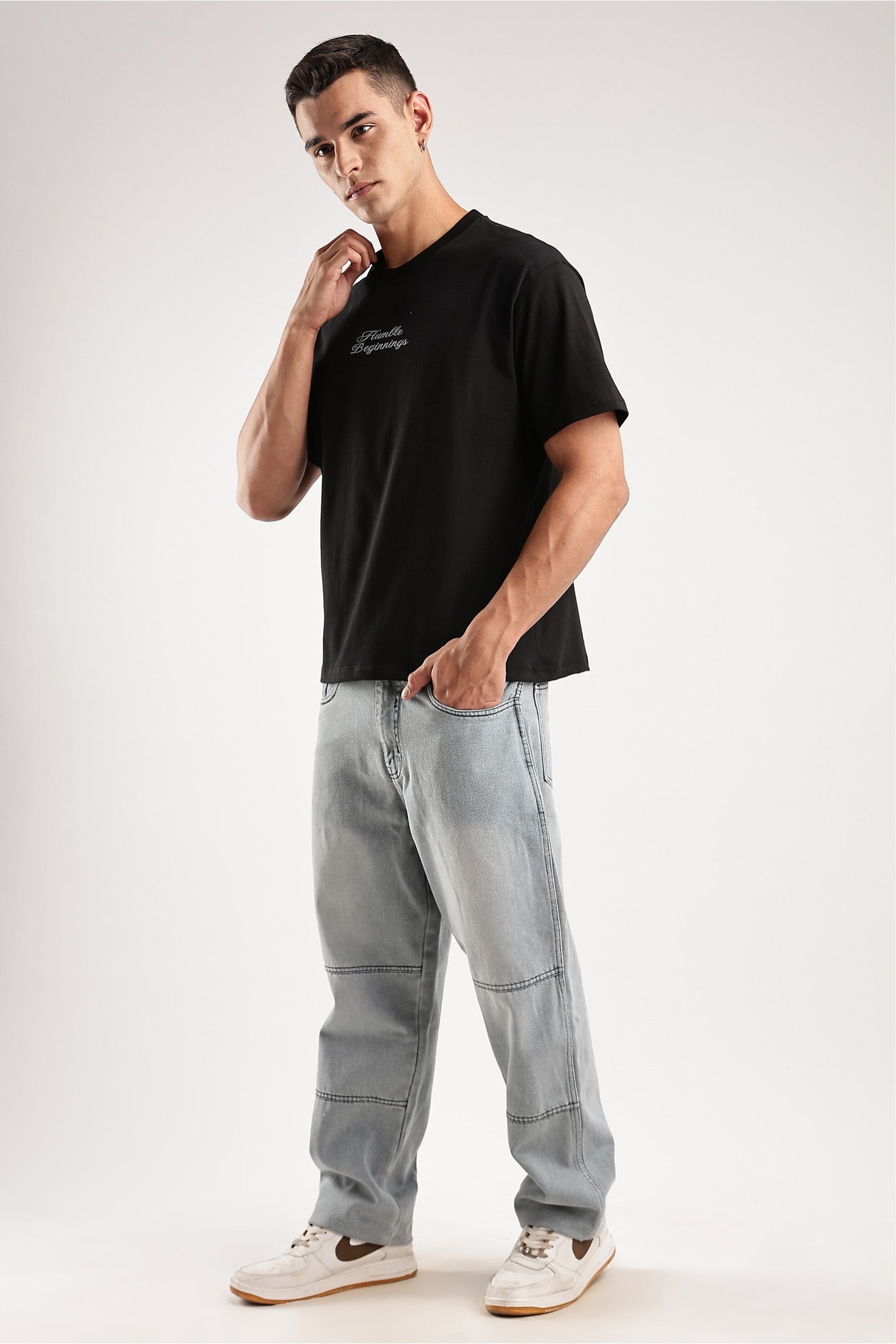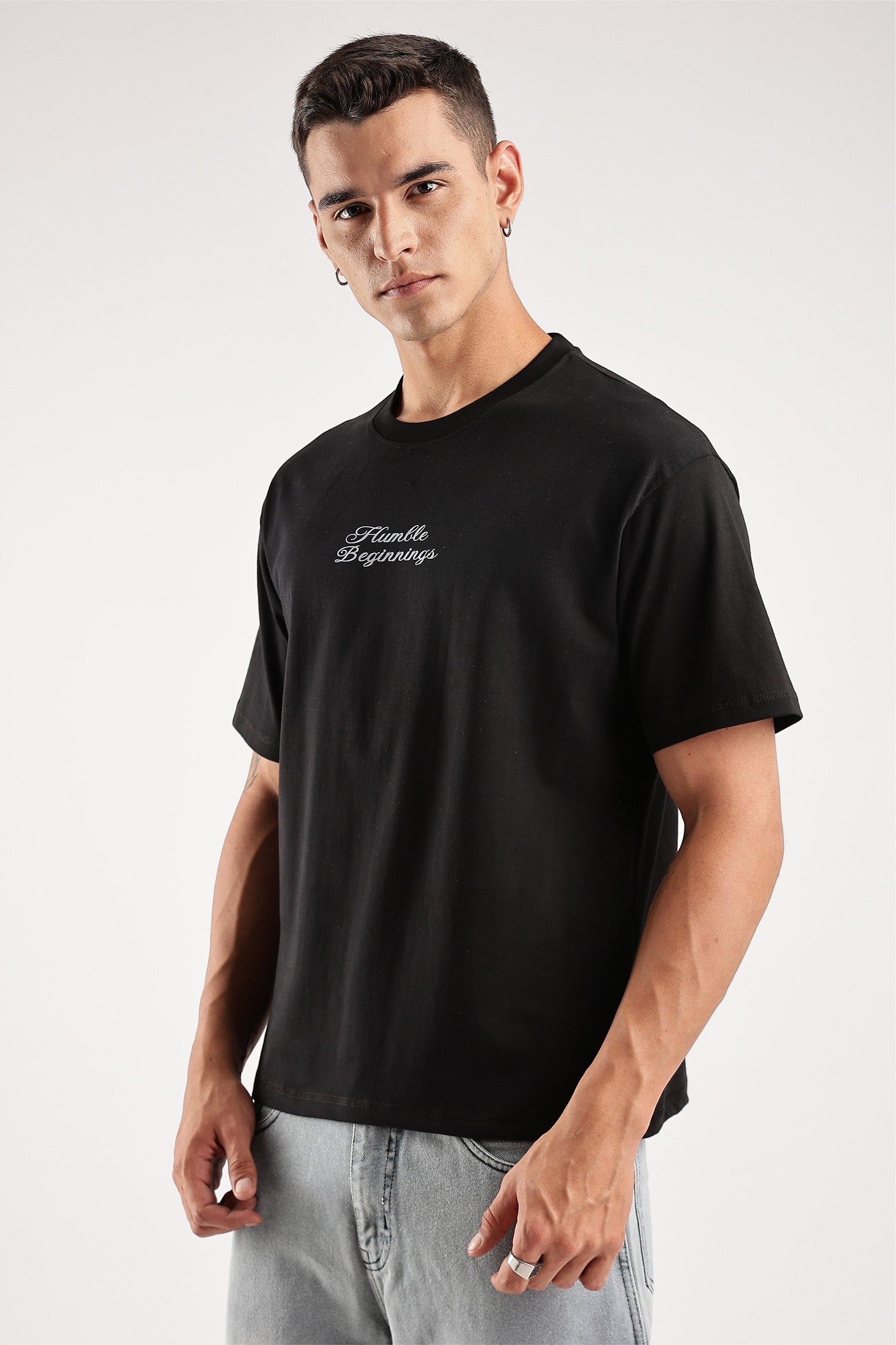 Humble Beginnings isn’t about staying small — it’s about knowing exactly where you came from while being obsessed with where you’re going. No hype, no noise — just a clean, commanding piece built for those who move with quiet power. Cut from heavyweight 220 GSM cotton, this all-black essential wears like armor — strong, structured, and made to endure. The energy? Unstoppable.